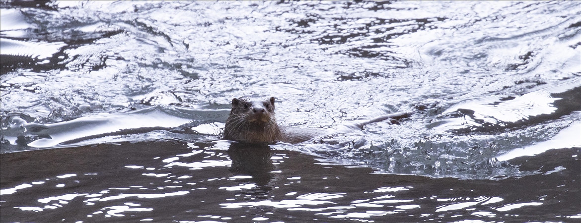 Bir süre başını su yüzeyine çıkararak çevreyi izleyen su samuru, daha sonra kaya oyuğuna girerek gözden kayboldu.