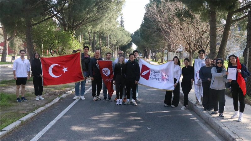 İzmir Katip Çelebi Üniversitesinde eğitim gören öğrenciler, su krizine dikkati çekmek için farkındalık koşusunda bir araya geldi.