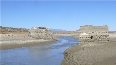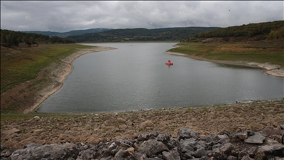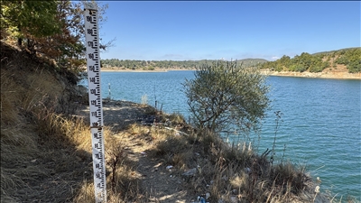 Tekirdağ'da içme suyu ve tarımsal sulamada kullanılan Naip Barajı'nda kuraklığın etkisiyle su çekilmesi sürüyor.