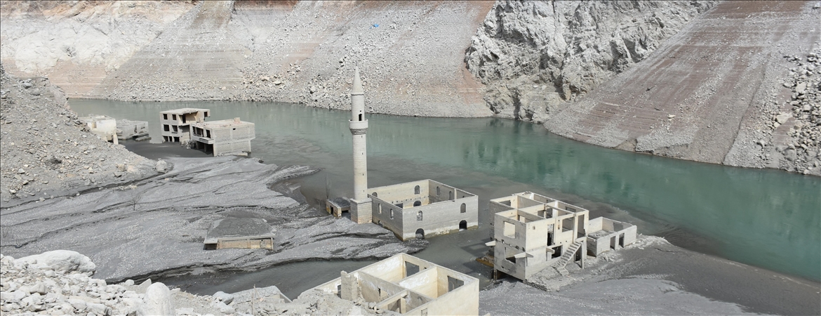 Su seviyesinin azalmasının ardından 2010'da boşaltılan Narlık köyündeki ev, cami ve bir dönem zeytinyağı üretiminde kullanılan fabrika gibi yapılar yeniden ortaya çıktı.