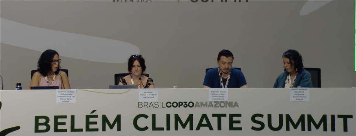 GFC'den Valentina Martinez'in yönettiği toplantıda Uluslararası Dünyanın Dostları Organizasyonu temsilcisi Sara Shaw, Radikal Gençlik İttifakı Sivil Toplum Kuruluşu temsilcisi Alejandro Jamies ve Yerli Halklar Çevre Ağı temsilcisi Adrienne Aakaluk Blatchford birer konuşma yaptı.