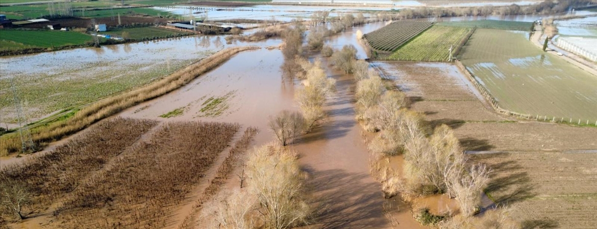 Manisa ve Menemen Ovası'nın önemli su kaynaklarından Gediz Nehri'nin debisi yükseldi, nehrin taşması sonucu çevredeki üzüm bağları ve tarım arazileri su altında kaldı.