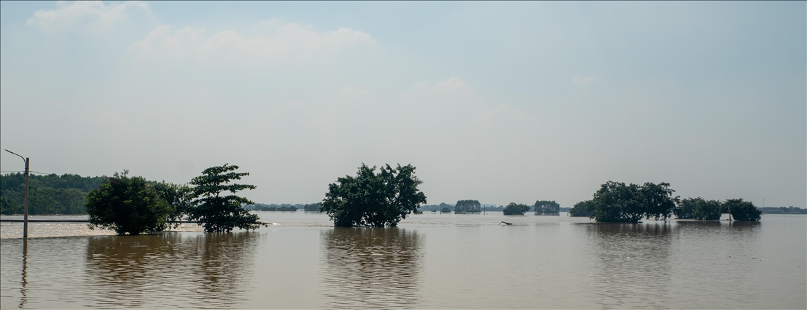 Kentte şiddetli yağışlar sebebiyle taşan nehirler, evleri ve tarım arazilerini sular altında bırakırken, vatandaşlar caddelerde kayıklara binerek hareket etti.