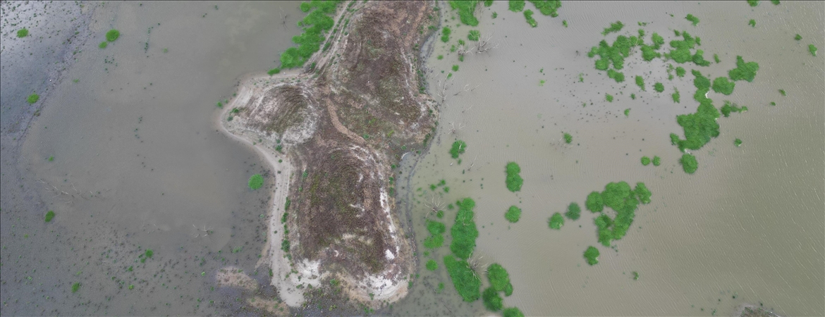 Gölette suyun kullanılabilir seviyenin altına düşmesi sonucu, bazı yerlerde adacıklar, çamur tabakası ve otlar oluştu.