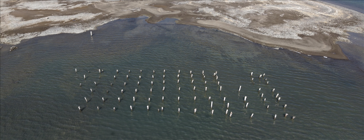 Tarihi kalıntıların, mikrobiyalitlerin (dikit), eski yerleşim alanlarına ait yapı kalıntılarının görülebildiği göl kıyısında, yıllardır su altında olan bazı kalıntılar da çekilmeyle birlikte görünür hale geldi.