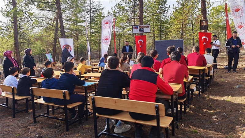 Milli Eğitim Bakanlığının "Yeşil Vatan-Benim Okulum Geleceğe Çare" projesi kapsamında Ankara'nın Beypazarı ilçesinde, sınıfı bir günlüğüne ormana taşıyarak ders işleyip çevre temizliği yaptılar.