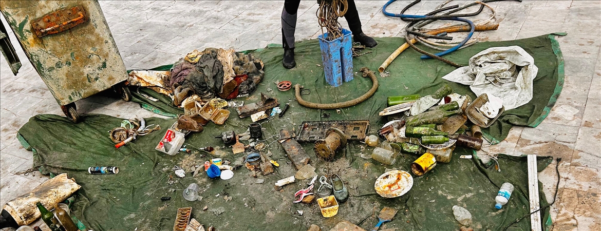 Gönüllü dalgıçların yer aldığı temizlikte, denizden çöp konteyneri ile bir miktar atık çıkarıldı.