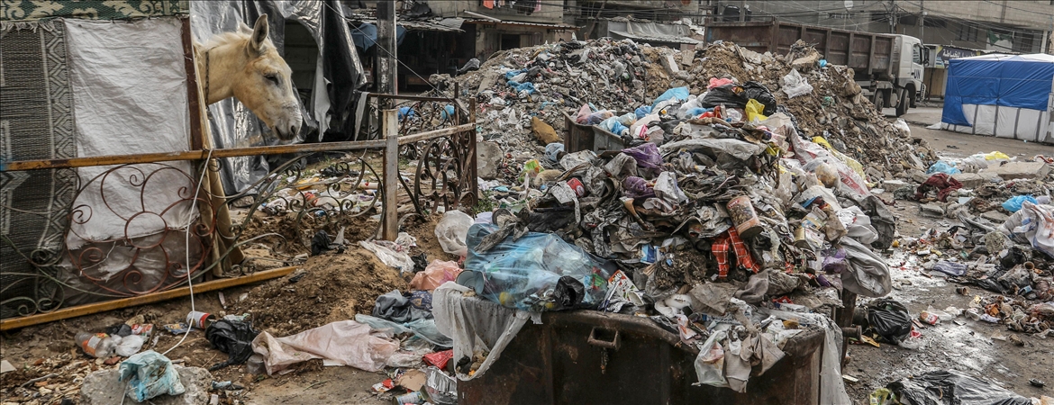 Refah'taki Filistinliler, çöp yığınlarıyla çevrili çadırlarda yaşamak zorunda kalıyor. İsrail'in saldırılarında çöp kamyonlarının çoğu kullanılamaz hale gelen belediyeler gerekli yakıt da olmadığı için çöpleri düzenli olarak toplayamıyor.