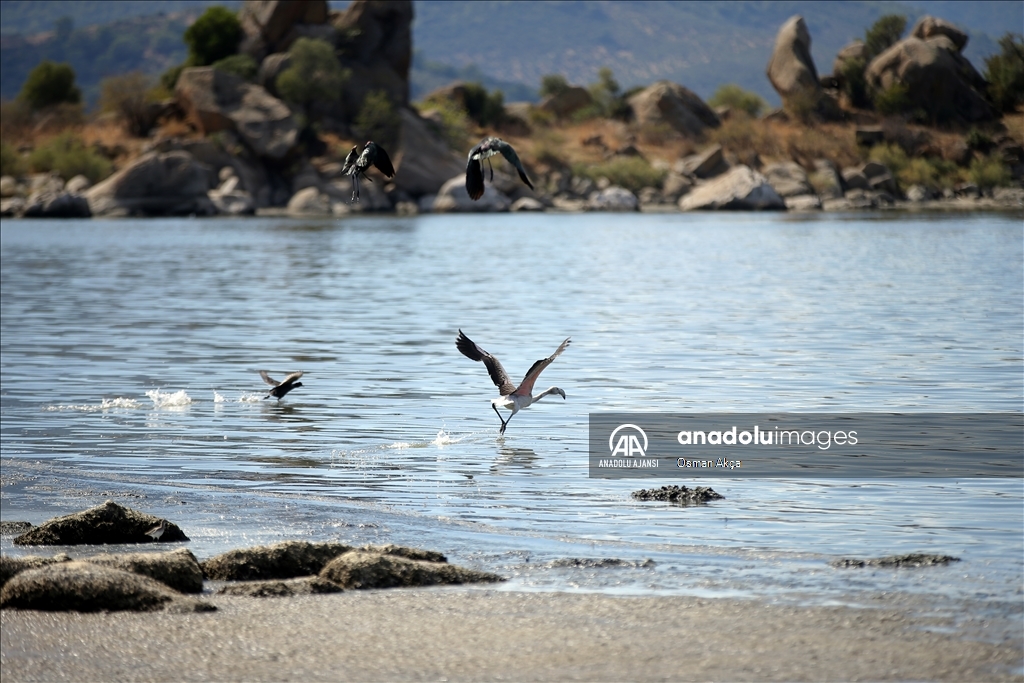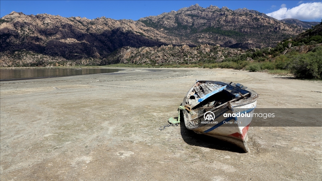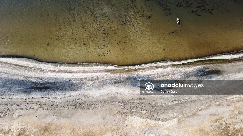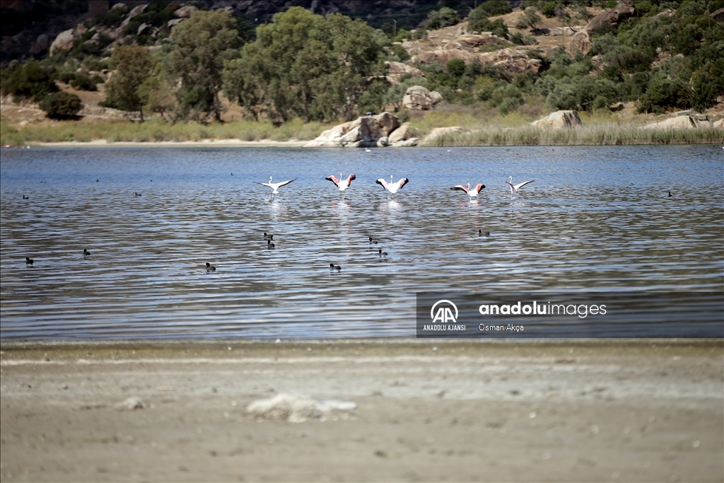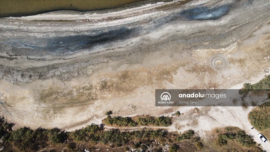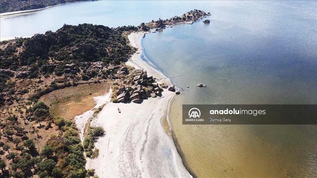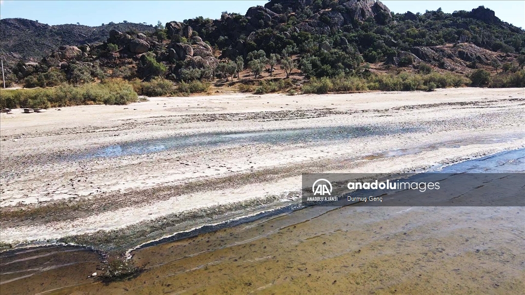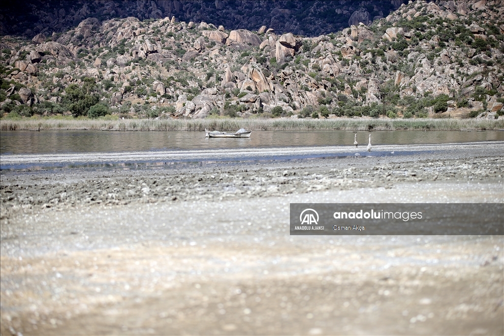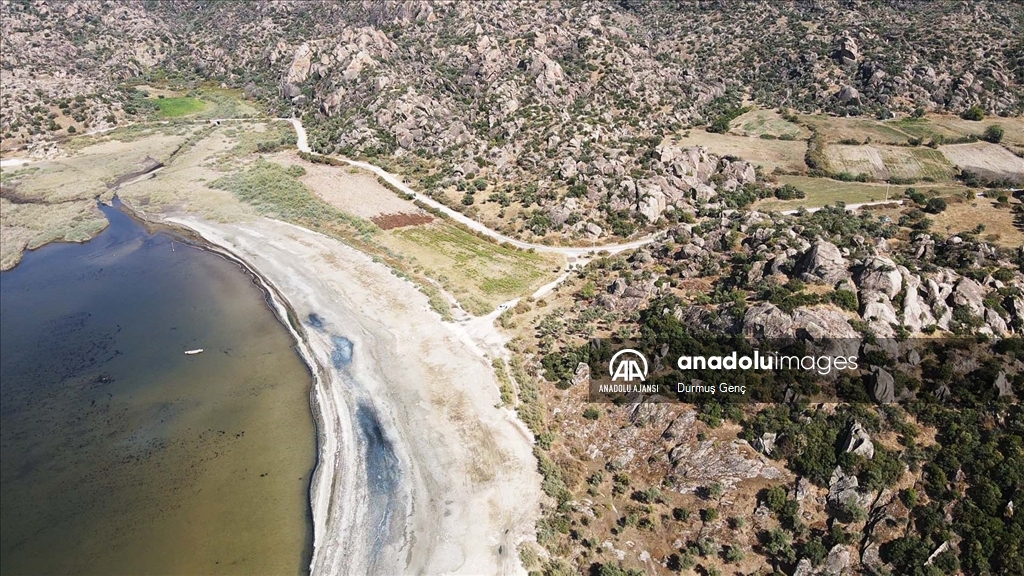 Doğal güzelliği, biyolojik çeşitliliği ve çevresindeki tarihi kalıntılarıyla uluslararası öneme sahip sulak alanlar arasında yer alan Ege Bölgesi'nin en büyük doğal gölünde yaşanan kuraklık nedeniyle sular 40 metre civarında çekildi.