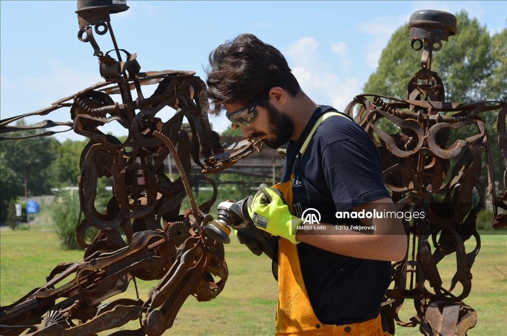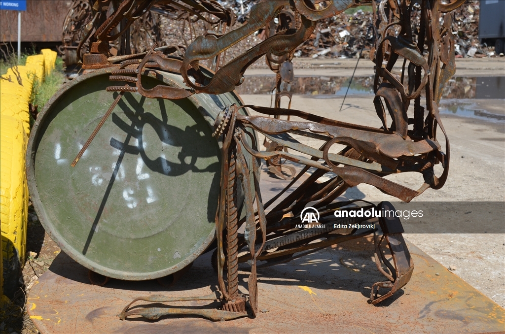 Son 4-5 yıldır hurda metal kullandığını söyleyen Ayvaz, "Heykellerimle dünyayı kurtarıyor muyum? Evet, çünkü geri dönüşüm yapıyorum ve çevreyi demirin eritilmesinden ve fabrikalarda demir plaka yapılmasından kurtarıyorum, geri dönüşümle de sanat eseri meydana geliyor." diye konuştu.