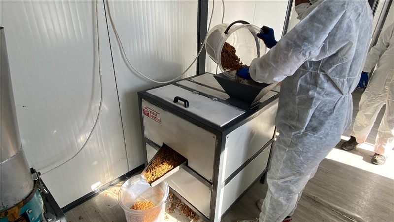 Kayseri'de Melikgazi Belediyesi, sıfır atık çalışmaları kapsamında yemek artıklarını işleyerek kedi ve köpekler için kuru mama üretiyor.
