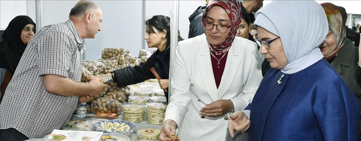 Gastronomi günlerinin açılış programına katılan Cumhurbaşkanı Recep Tayyip Erdoğan'ın eşi Emine Erdoğan'ı, Vali Yardımcısı Hatice Cemre İncesu, Vali İhsan Selim Baydaş'ın eşi Zeyneb Baydaş ve Belediye Başkanı Rahmi Metin'in eşi Fatma Metin karşıladı.