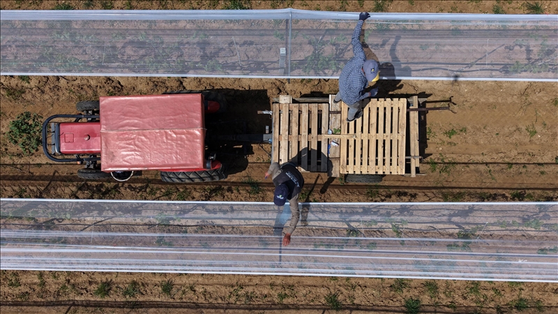 Türkiye'nin önemli üzüm üretim merkezlerinden Manisa'nın Sarıgöl ilçesindeki üreticiler, bağlarını dolu, don ve aşırı sıcak gibi olumsuz hava koşullarına karşı "dolu tülü" sistemiyle koruyor.