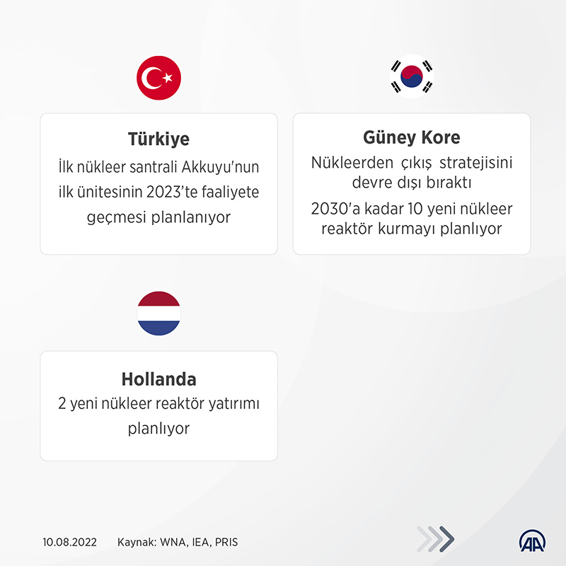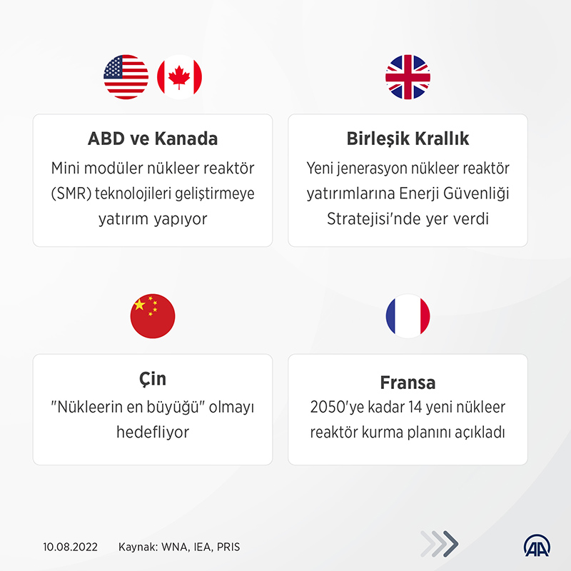 Avrupa Birliği (AB) ülkeleri, iklim değişikliğiyle mücadele taahhütleri kapsamında kapatmayı planladıkları nükleer enerji santrallerine ilişkin planlarını yeniden değerlendirirken, Birleşik Krallık, Fransa, ABD, Kanada ve Çin başta olmak üzere birçok ülke, nükleer enerjide yeni ve ilk olma özelliği taşıyan yatırım planlarını hayata geçirmeye hazırlanıyor.