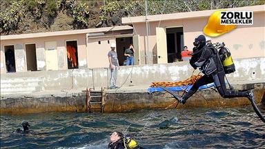 Su altında sportif faaliyetlerinin yanı sıra kaynak ve enkaz kesme gibi çalışmalar gerçekleştiren dalgıçlar, tehlikeli bir meslek yapmalarına karşın deniz altındaki hayatı keşfetmenin mutluluğunu yaşıyor